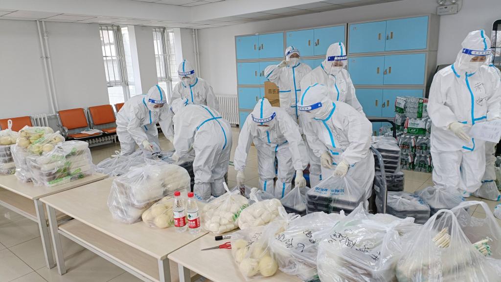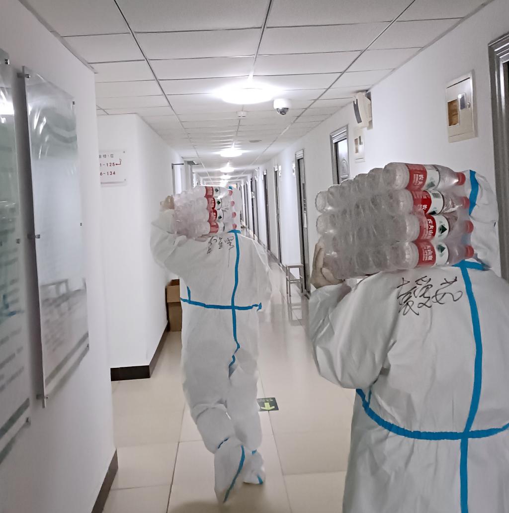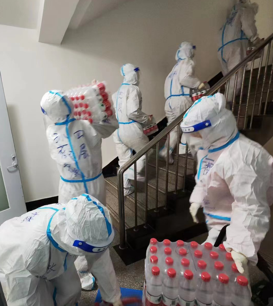 数百份饭菜、物资,她们一趟趟送到学生手中