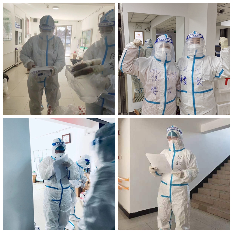 和楼内宿管、保洁等工作人员一道投入“战斗”
