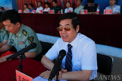 7月9日,1779名军训学员在延庆县康庄611学生军训基地结束军训任务,上午9点,闭营仪式在训练场隆重举行。北京市军训办主任张培松大校,校长王有年,党委副书记高东,党政办主任华玉武,武装部部长、学工部部长韩宝平,宣传部部长程春生,保卫处处长王万山以及各学院领导老师出席此次闭营式。仪式由基地副主任王玉柱主持。