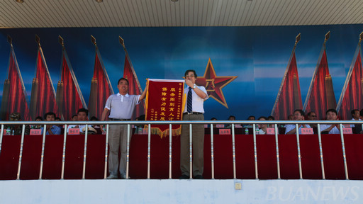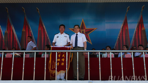 仪式上,校长王有年向承训部队、北京康庄611军训基地分别赠送锦旗。