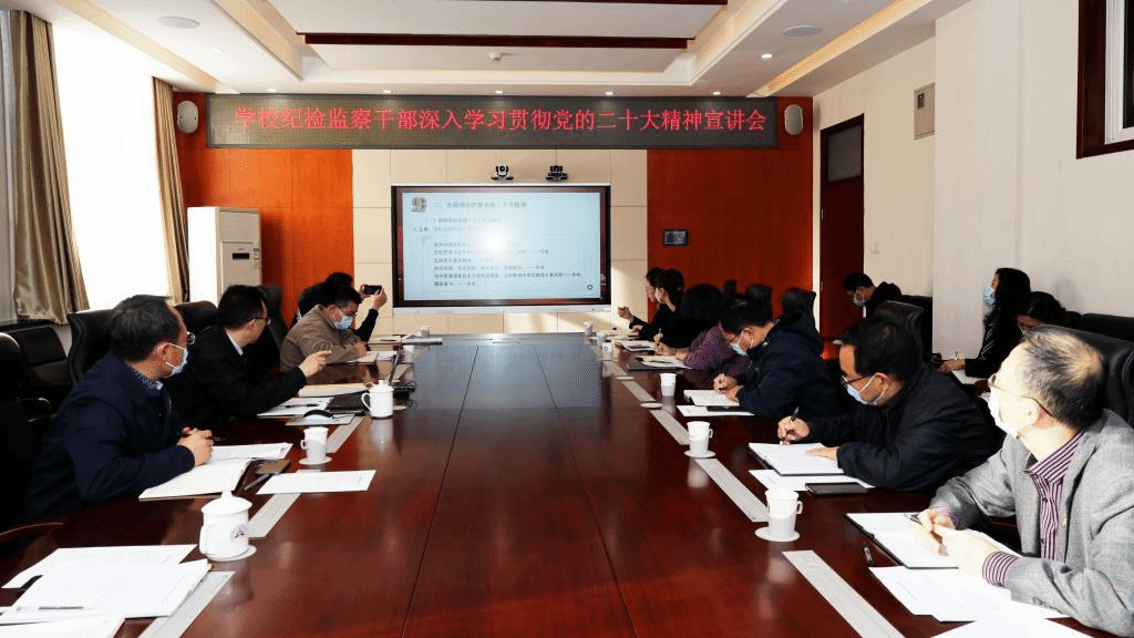李伟书传达了市纪委和学校党委关于认真学习宣传贯彻党的二十大精神的相关部署和安排,结合习近平总书记在党的二十大召开以来系列重要讲话精神和十九届中央纪委工作报告,对党的二十大精神进行了系统导学,并对世界杯官网纪检监察干部学习宣传贯彻党的二十大精神提出要求。