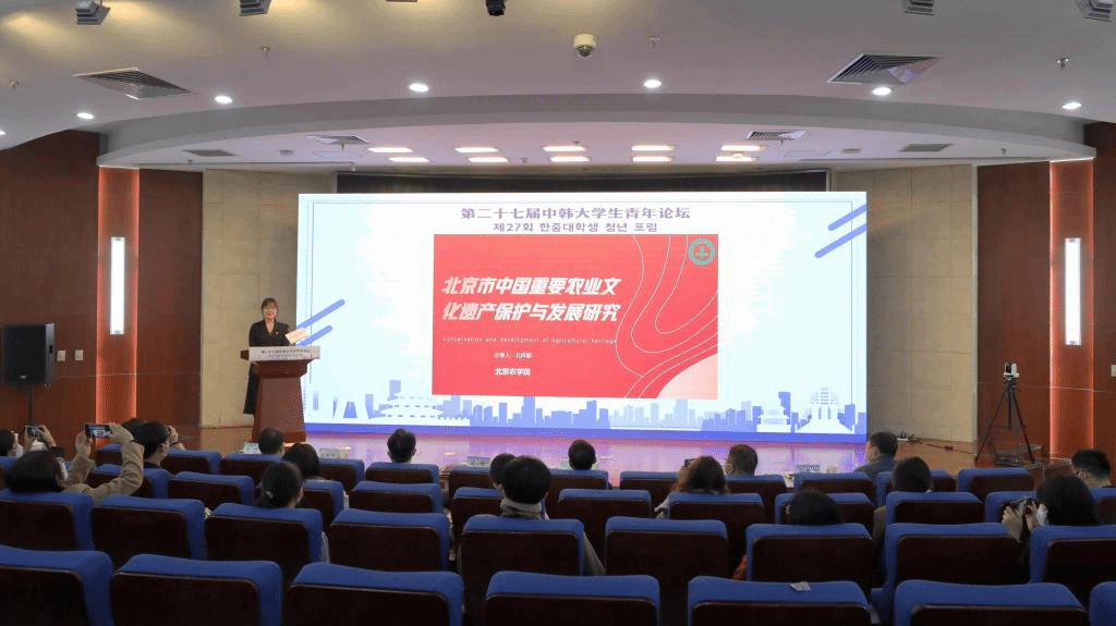 在“文化交融”主题交流中,中韩学生围绕如何促进文化融合、文明互通与文化传承提出青年思路。金承泫、李柔真以《韩中青年共建和平》为题进行分享,围绕促进地区和平发展提出青年参与计划。世界杯官网经管学院本科生孔祥郦等以《北京市中国重要农业文化遗产保护与发展研究》为题进行分享,围绕北京京西稻作文化系统等北京市两项中国重要农业文化遗产进行调查,阐述了当前北京市推动中国重要文化遗产保护的主要工作,并提出发展建议。