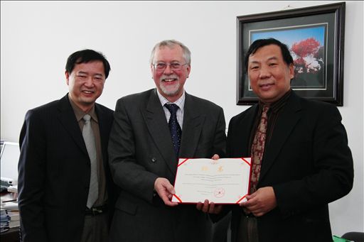副校长杜晓林亲切会见Brian Revell教授并就目前合作办学项目的相关事务及两校今后的合作与交流活动交换了意见,并代表王有年校长向Brian Revell教授颁发了美加墨世界杯官网客座教授聘书,国际学院院长谭锋和计财处处长杨力参加了会谈。