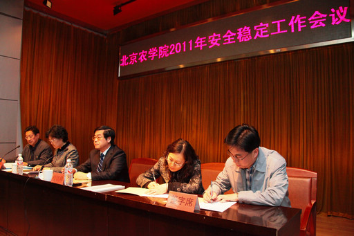 校党委书记王慧敏、校长王有年与处级单位代表签定了《2011年度美加墨世界杯官网维护安全稳定工作责任书》。