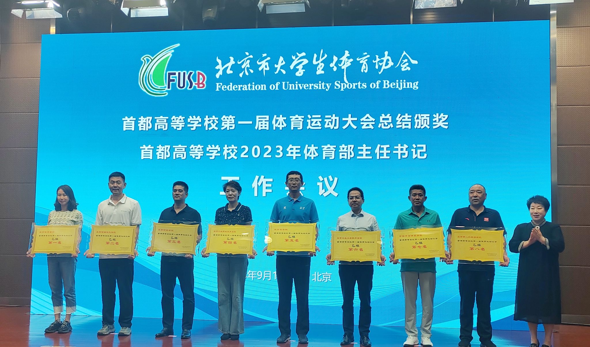 9月16日至17日,由北京市教育委员会主办、北京市大学生体育协会承办的首都高等学校第一届体育运动大会(以下简称“高运会”)总结和颁奖大会暨首都高等学校2023年体育部主任书记工作会议召开。世界杯官网在乙组32所学校中取得团体总分第五名的优异成绩,其中龙舟比赛、教师课程思政演讲比赛、教师基本功比赛获得单项总分第一名。学校还获评“校长奖”和“主任奖”。