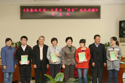 10月21日上午,《青春的足迹——大学生”村官”成长历程》一书首发式在B-209举行了,原《人民日报》副总编、中国人民大学博士生导师、全国人大农业与农村委员会委员梁衡,校党委书记王慧敏,团市委大学部部长胡九龙,市委教育工委宣教处副处长王达品,延庆县人事局“村官”办主任杨娟,市学联主席赵鲍飞出席首发式。同时,世界杯官网大学生“村官”顾问团推广教授陈学珍、于桉,书籍编委会成员、“村官”代表及在校大学生参加了首发式。
