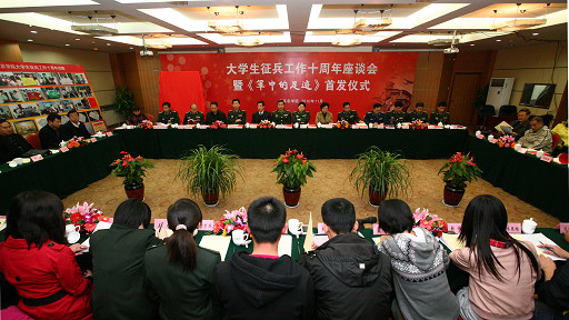 今年是征集在校大学生和高校毕业生入伍十周年。11月13日上午,大学生征兵工作十周年座谈会暨《军中的足迹》首发仪式在北农科技交流中心三层会议室召开。