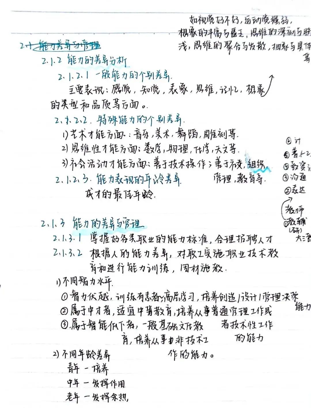我会选择不同颜色区分知识的重点、难点、考点。黑色部分是笔记的主体部分;红色部分是我认为的难点,需要深入理解;蓝色部分是考点,复习时重点背诵。对于知识点很多的科目我会选择思维导图的形式。