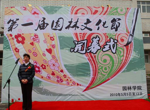 园林学院院长马晓燕对园林文化节的筹办和活动内容做了全面的介绍。她说,园林文化节从筹办到开幕,历时近一年。为使园林文化节成为展现园林学院各专业特色的载体和彰显学生青春风采的舞台,学院党政领导班子多次给予指示并组织专题研讨,学生工作队伍积极开展活动方案策划与制定工作,在借鉴国内外优秀经验同时,根据该院工作实际编制了活动总体方案。本届园林文化节活动内容丰富,形式多样。她真诚地欢迎各位老师同学参与到园林文化节中来,使园林文化节成为北农人共同的节日!