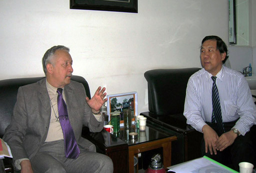 副校长杜晓林代表学校热情接待了扎哈罗夫一行。双方就开展北农与俄罗斯联邦农林高等院校的合作、加强和上海合作组织的联系与交流进行了协商。扎哈罗夫应允将协助北农开展相关国际交流。