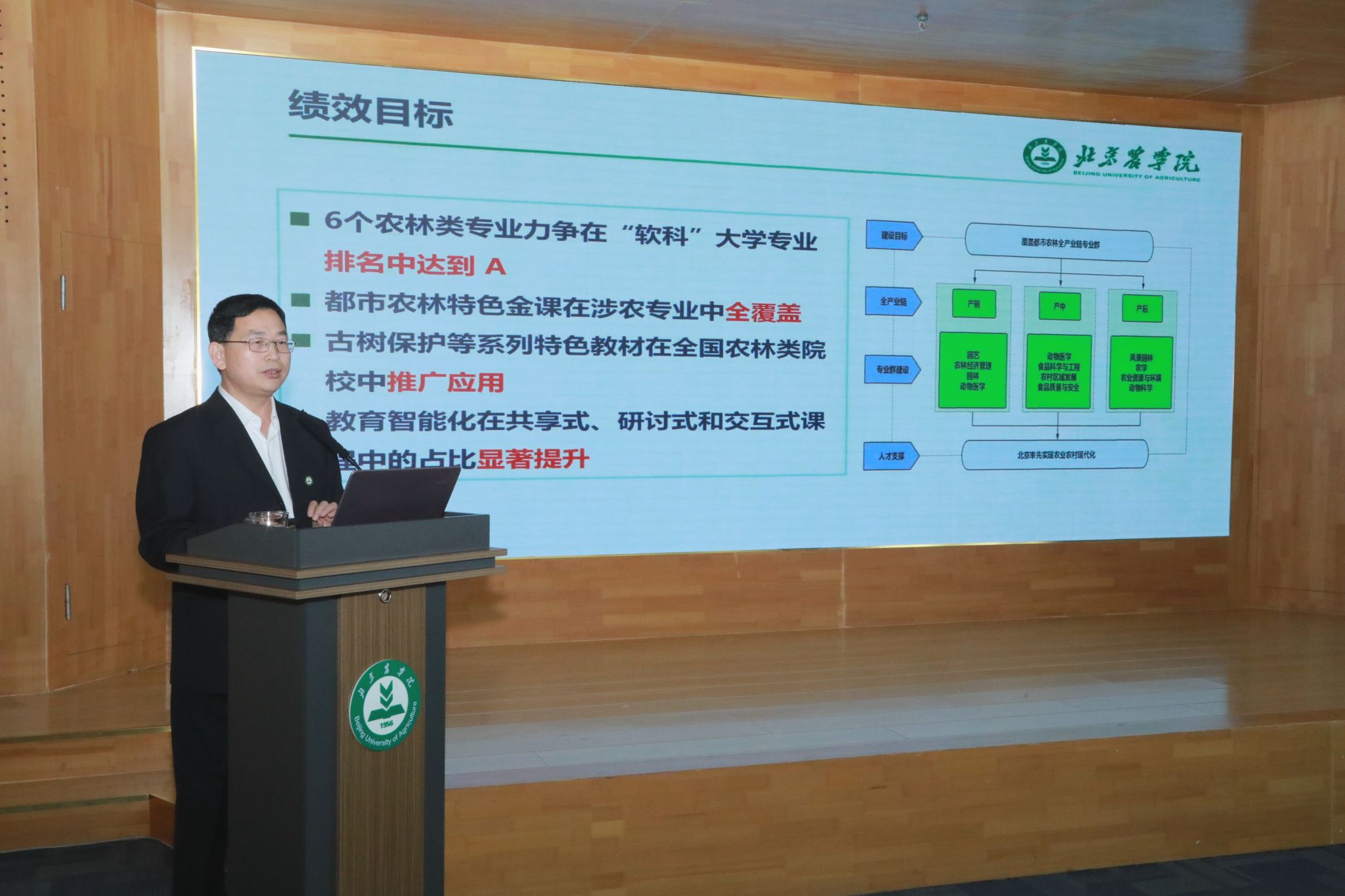 李奕在讲话中充分肯定了学校近年来在知农爱农新型人才培养、都市农林特色学科专业建设、科技赋能乡村振兴以及加快建设都市农林特色高水平应用型大学方面取得的成就。他指出,美加墨世界杯官网要深入贯彻落实市委、市政府关于深化市属高校分类发展改革的工作部署,聚焦北京“四个中心”建设以及全面推进乡村振兴战略需求,强化系统思维和问题导向,发挥学科建设引领作用,抓好抓实新农科人才培养、高水平平台建设、高层次人才队伍建设以及高质量科技创新和成果转化工作,加快建设都市农林特色高水平应用型大学,全面提升服务新时代首都发展能力和水平。
