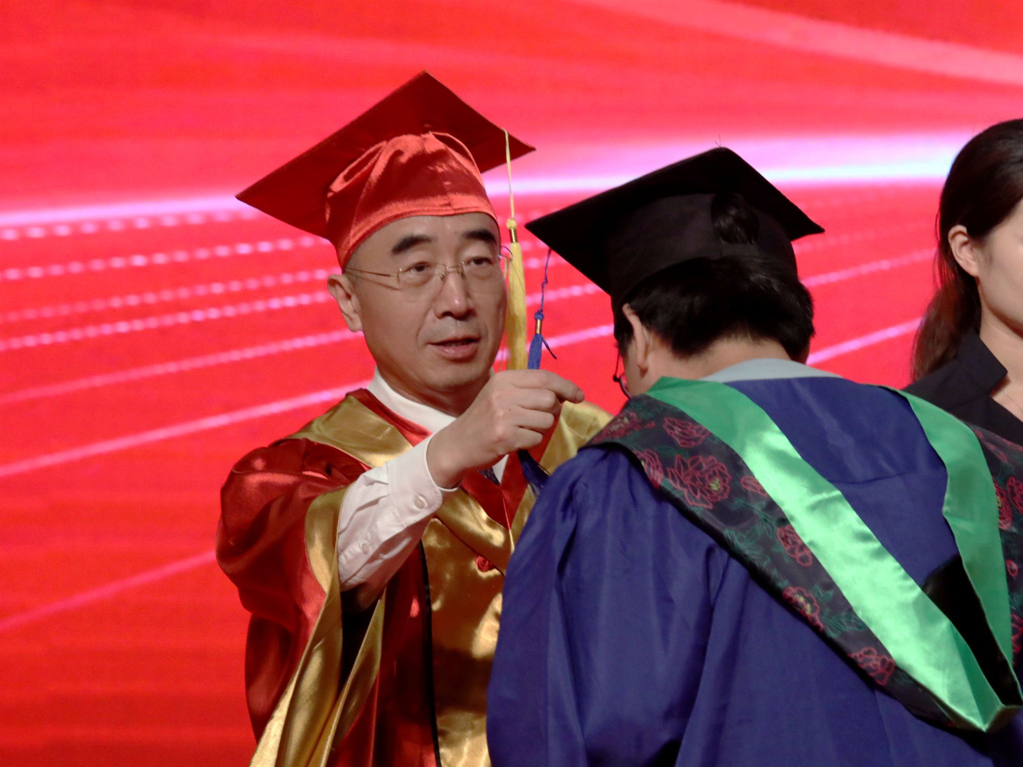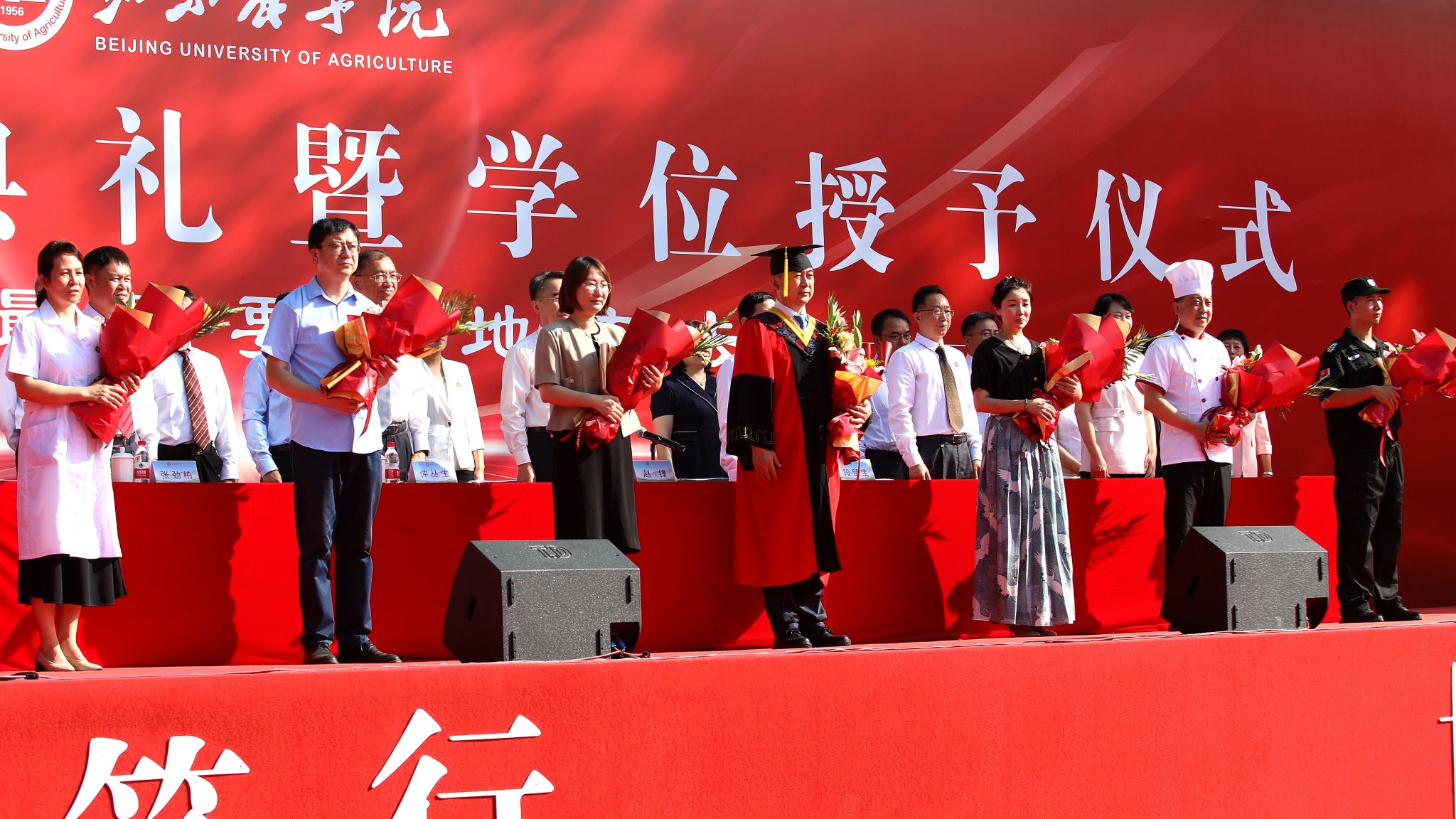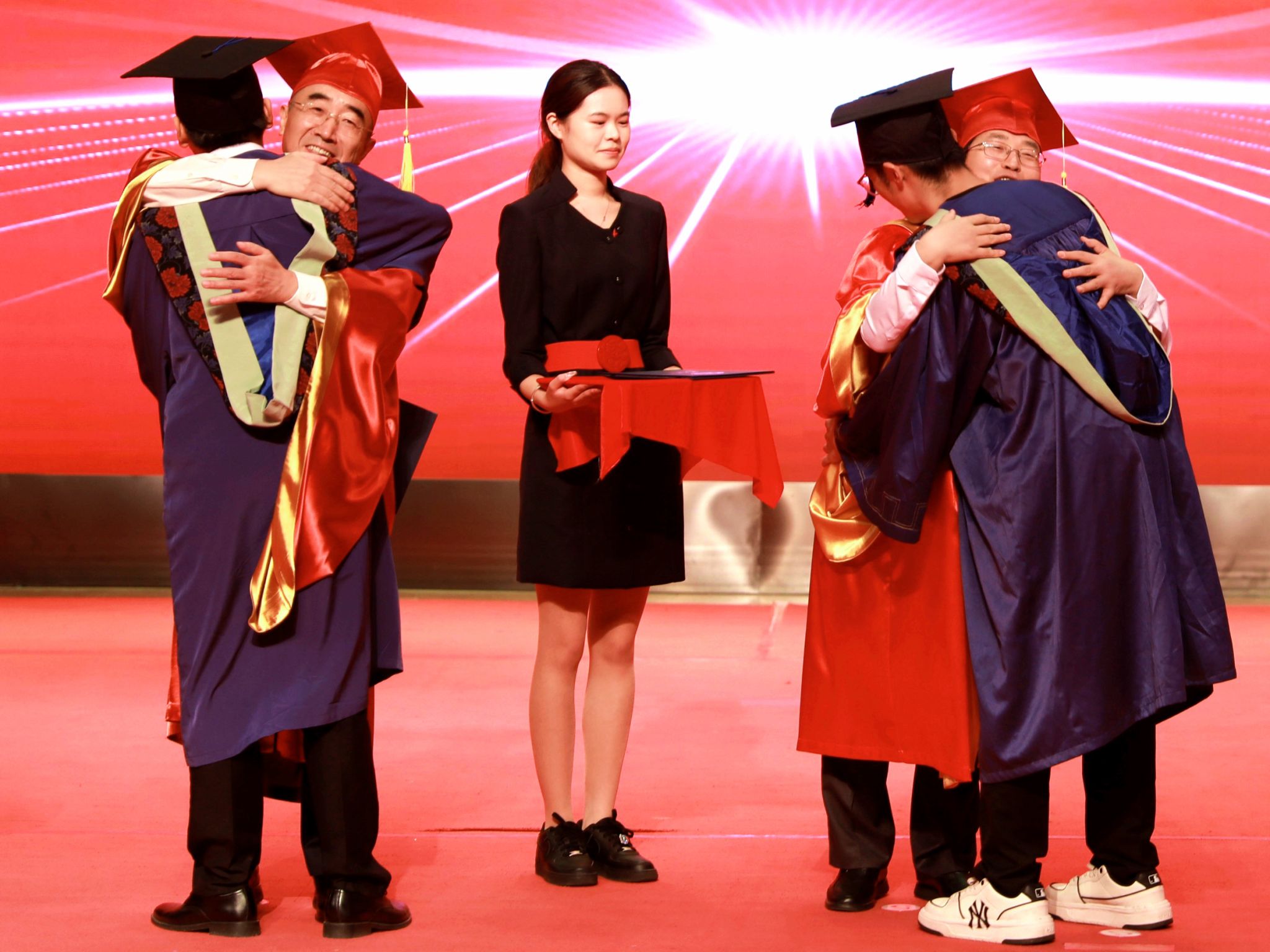 全体毕业生依次有序上台受礼,接受学有所成、圆满毕业的“拨穗礼”。学校专门为每一位上台受礼的毕业生拍摄学位授予仪式导师合影照,记录珍贵而温情的一刻。