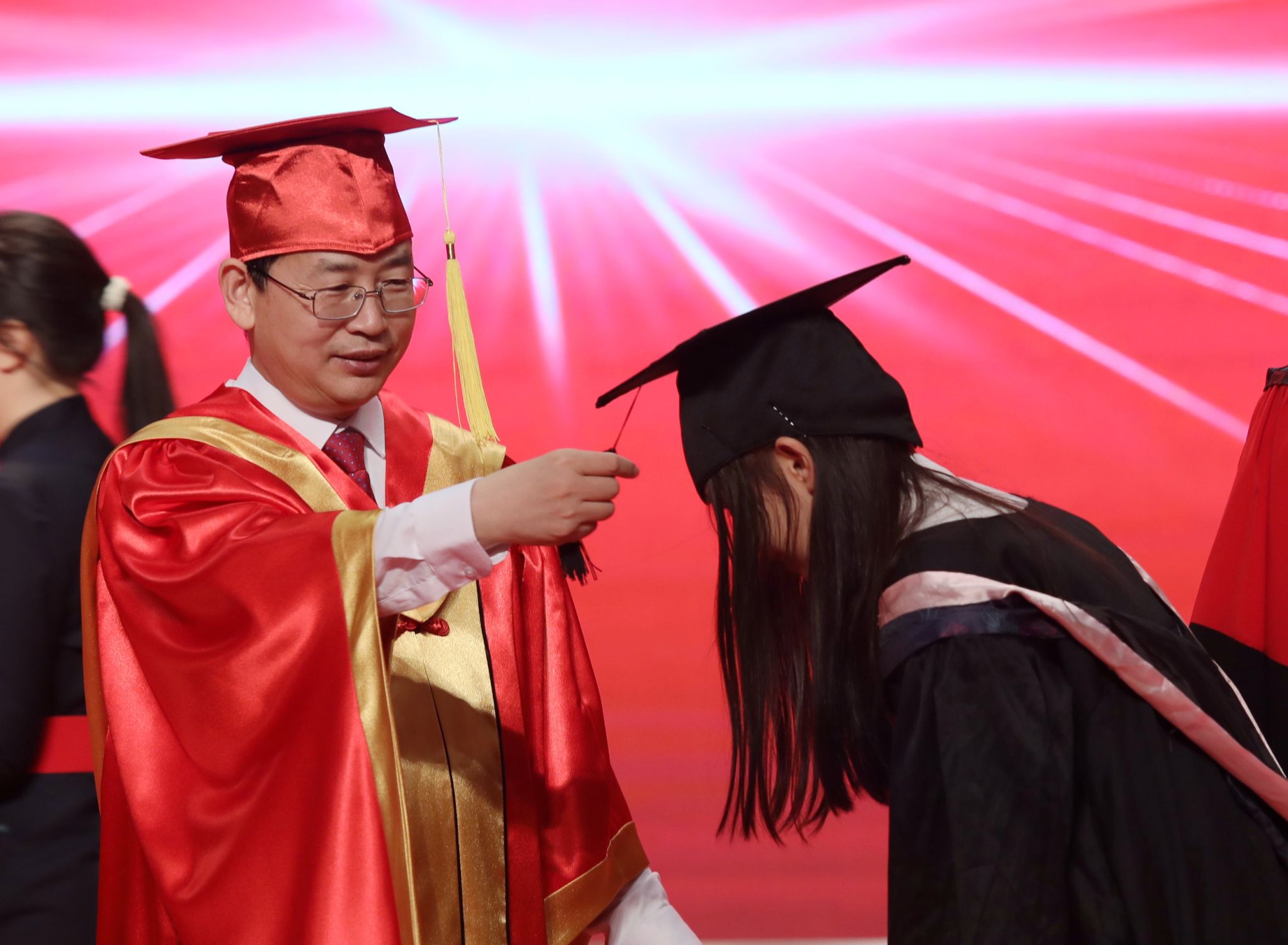 上午9点,学位授予仪式在学校大礼堂举行。