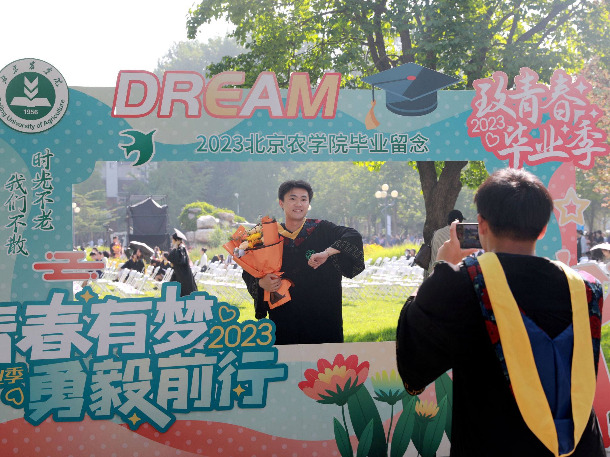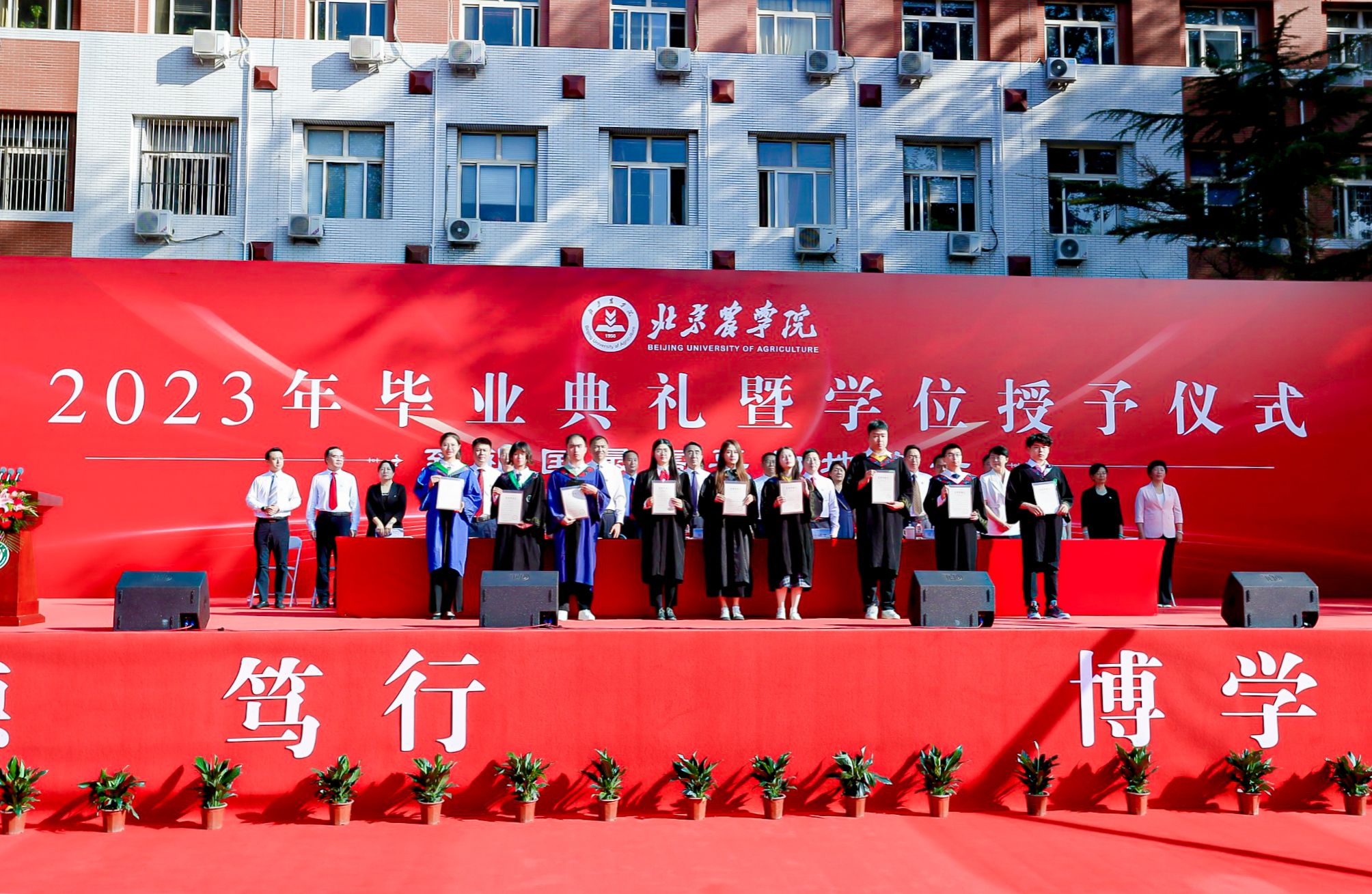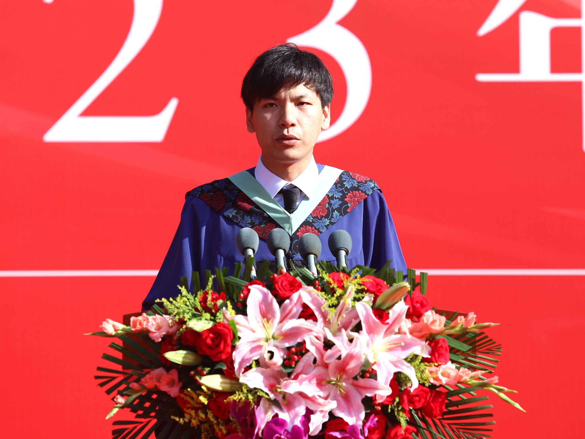 毕业生代表、植科学院2020级作物学研究生、北京市三好学生柯桐发言。他感谢学校教会自己何以“知农”、何谓“爱农”,在躬行实践中不断厚植“三农”情怀,懂得了要以青春之“小我”书写强国之“大我”,勇担强农兴农使命。未来将投身到祖国最需要的地方去,在广袤大地上向下扎根、向上成长。