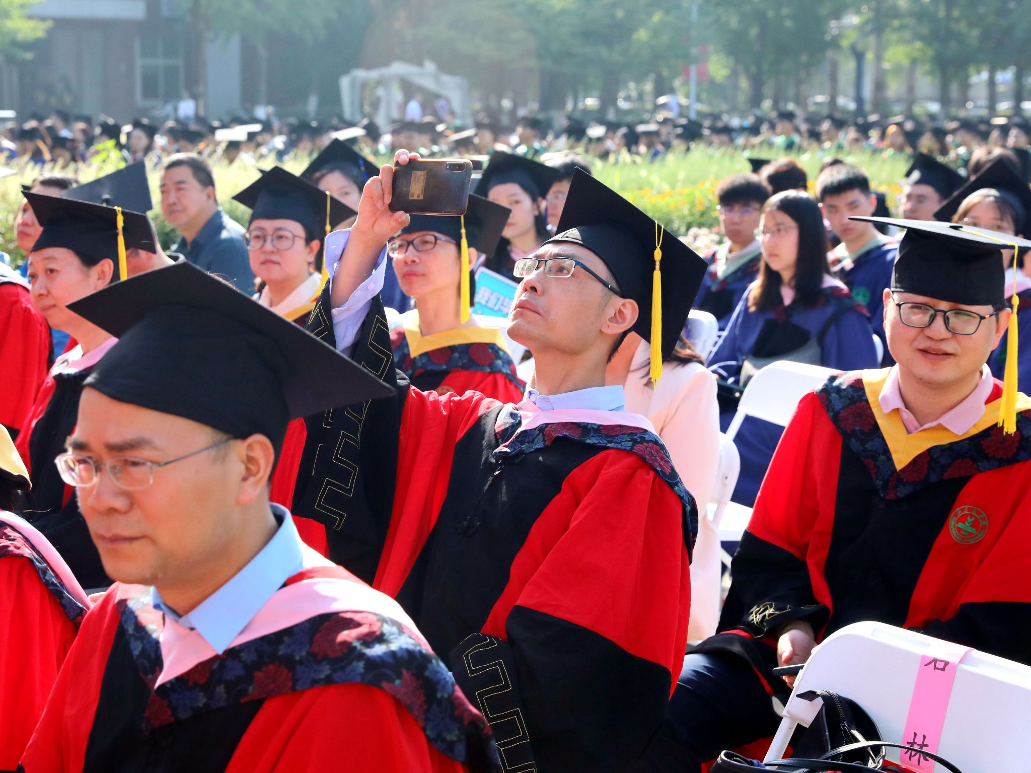 学校相关二级单位负责人、教师代表,毕业生导师、毕业生班主任代表,教学督导、教学秘书、辅导员代表,1700余名2023届全体毕业生,300余名2022届毕业生,校友代表,以及毕业生亲友参加毕业典礼。