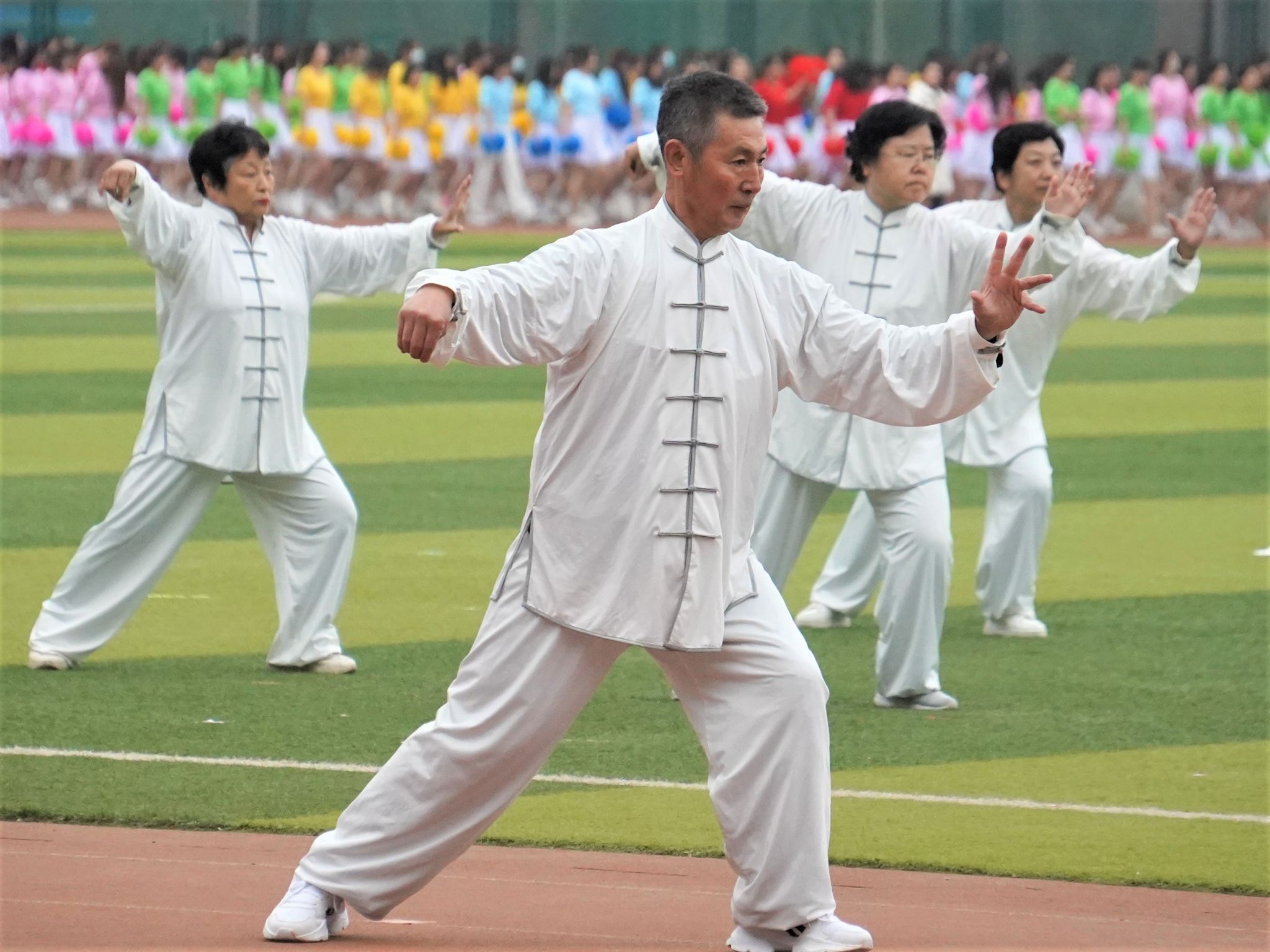 世界杯官网离退休教师和在职教工共同演绎《桑榆舞太极》,传承太极之精神,展现太极之神韵。