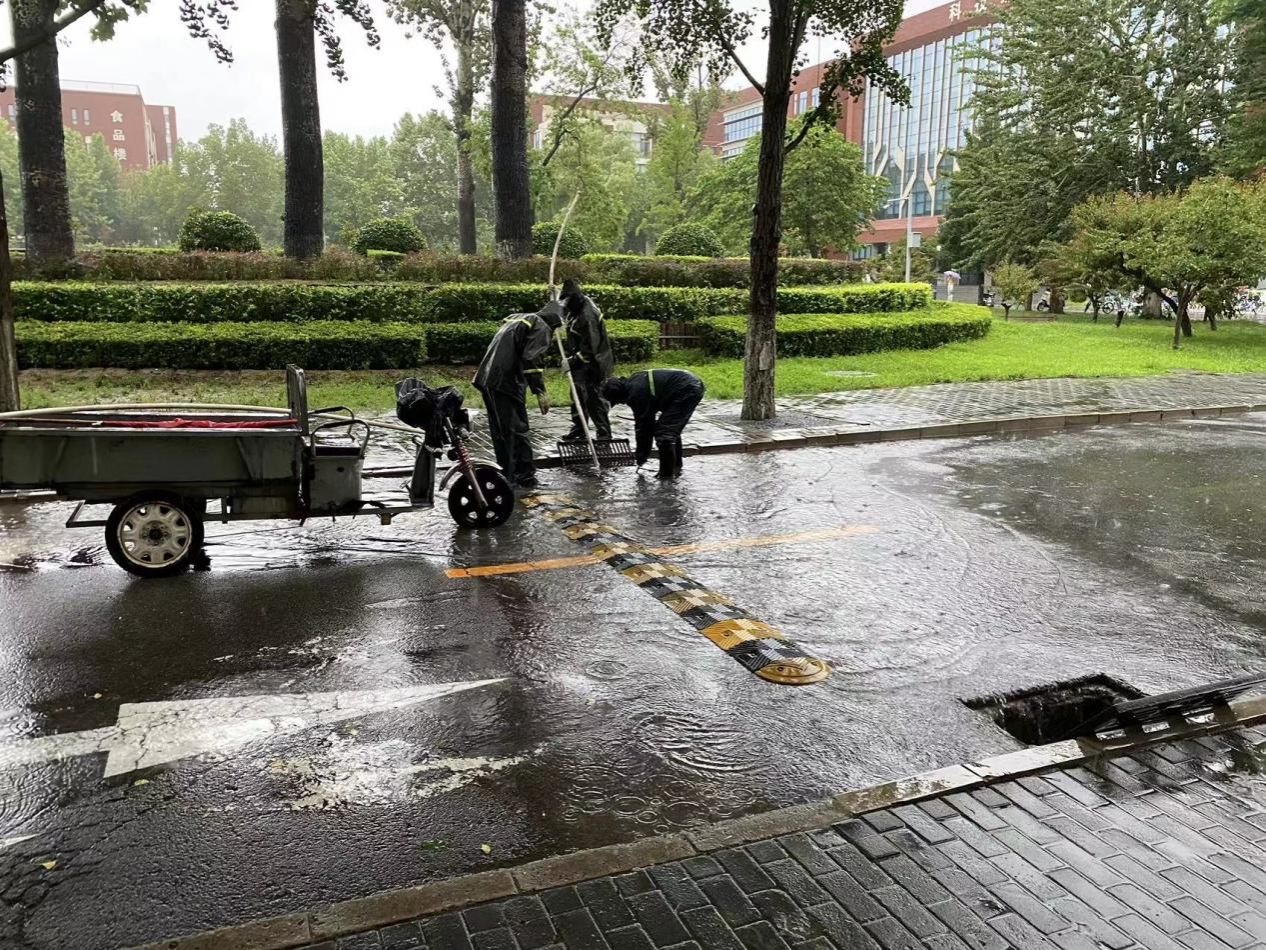 雨声就是哨声,学校广大党员干部职工在学校党委坚强领导下,坚持在岗在责、冲锋在前,时刻把师生安危放在心上;他们顶风冒雨、坚守在防汛工作一线,为校园安全筑牢“防汛墙”,用实际行动守护师生健康和校园安全。