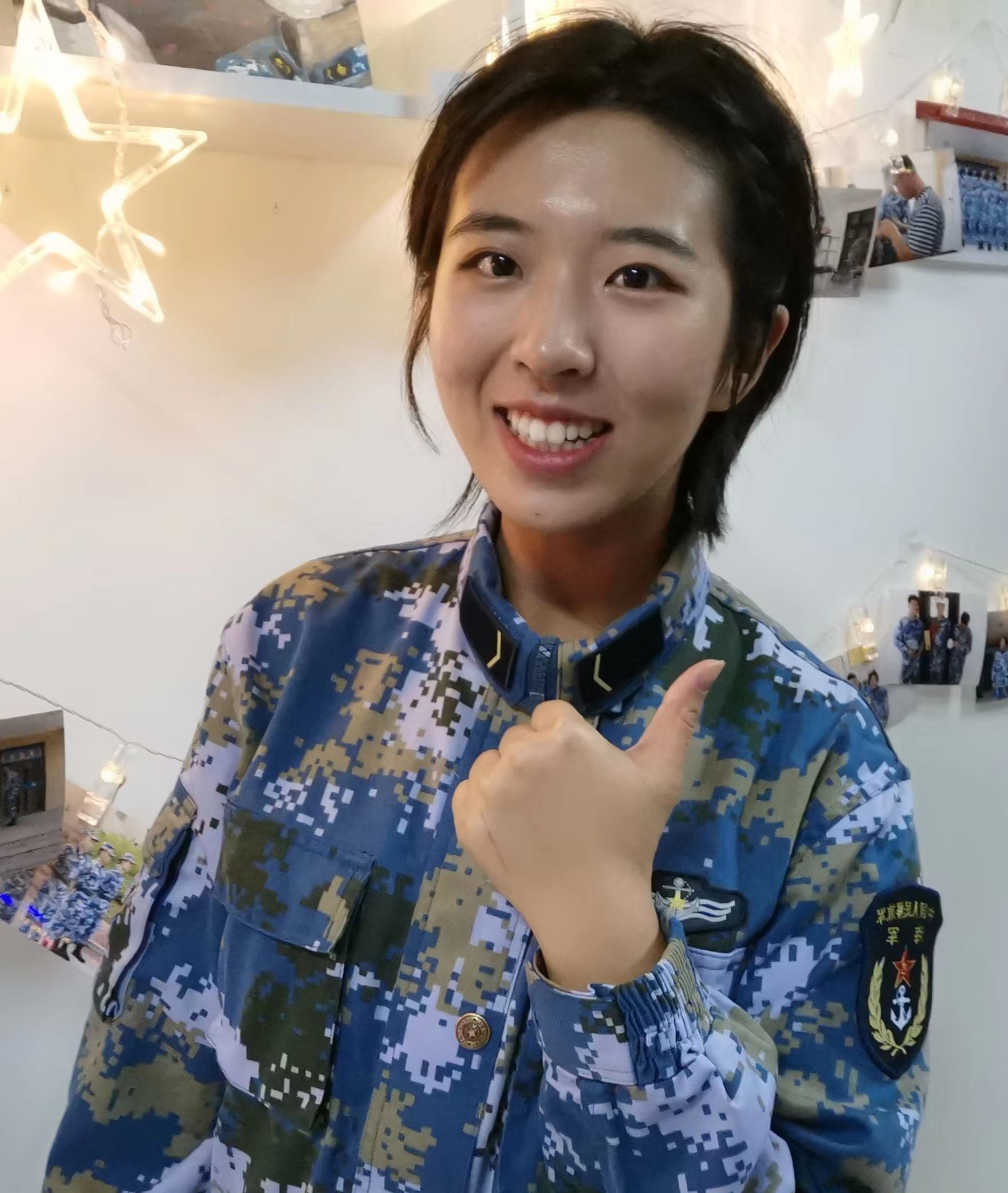 她说:“两年半的军旅岁月是我人生中不可磨灭的回忆,我很自豪能把最美好的青春年华献给祖国。我也非常荣幸能够见证中国海军挺进深蓝,能够切身感受到祖国的繁荣昌盛和中国军队的日益强大。”
