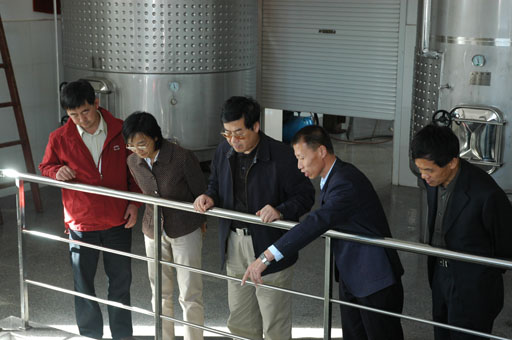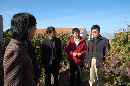 王院长还视察了食品系实践教学基地――北京红叶葡萄酒庄园,查看正在采收的葡萄质量状况,询问了葡萄园建设、投资、品种以及运营情况等细节,并就葡萄栽培架式与修剪方式等等技术环节与现场技术人员进行交流。