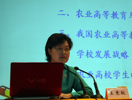 王慧敏从农业与国家、农业高等教育与农业产业的关系、我国农业高等教育的责任、世界杯官网发展战略以及农业高校学生的责任五个大方面做了深入、精彩的讲解。