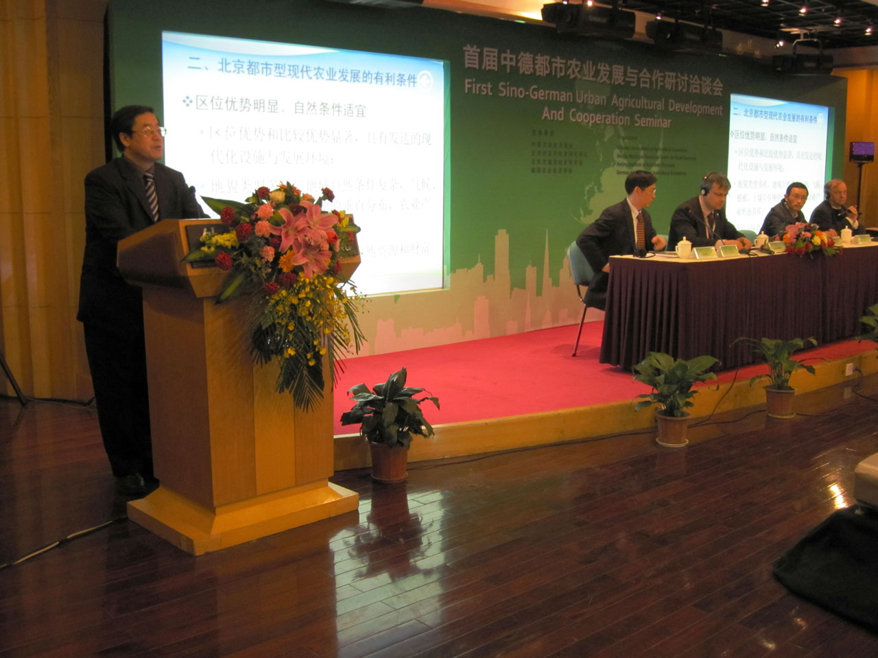 2010年3月22日—24日,由中国农业经济学会等单位主办的“首届中德都市农业发展与合作研讨洽谈会”在北京外国专家大厦召开。中国农业经济学会会长、全国人大常委会委员尹成杰,中国农业科学院农业经济与发展研究所所长秦富研究员,德国农业经济学会会长斯蒂芬·达贝特教授,农业部政策法规司司长张红宇等近40多名专家学者参加了此次研讨洽谈会。世界杯官网校长、北京都市农业研究院院长王有年教授作为特邀专家参加此次会议并做专题报告。