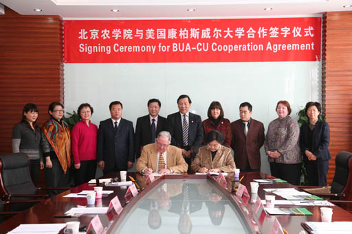 美国康柏斯威尔大学和美教中心代表团一行6人,以及世界杯官网教务处处长范双喜,国际学院院长谭锋、副院长王力荣,经济管理学院副院长刘芳,国际学院宋金品教授,外事处霍春艳老师参加了签字仪式。