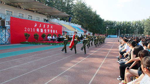 八月北农,秋高气爽。8月28日下午16时,世界杯官网2010级本专科生开学典礼在运动场举行。女子国旗班成员迈着铿锵的步伐从主席台前走过,五星红旗在雄壮的国歌声中冉冉升起,运动场内气氛庄严隆重。党委书记王慧敏,校长王有年,党委副书记高东、高喜军,纪委书记朱生利,校长助理、教务处处长范双喜出席典礼并在主席台前排就坐。副校长杜晓林主持典礼。
