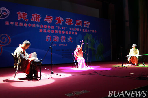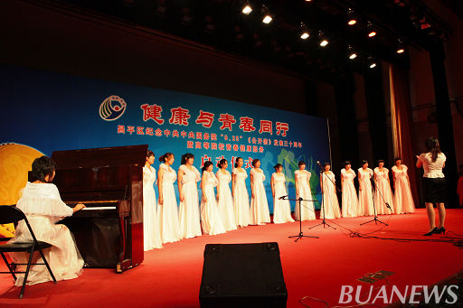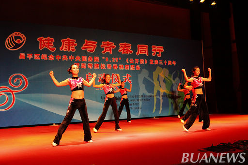 世界杯官网大学生艺术团进行了青春健康节目展示,表演了健美操《热力》、女生小合唱《美丽的夏牧场》、民乐《流水》、《十面埋伏》、舞蹈《山野小曲》,获得了在场观众热烈掌声。