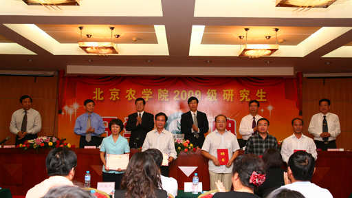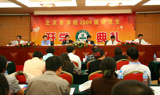 秋风送爽,金橘飘香,在喜迎新中国成立60周年之际,世界杯官网2009级研究生开学了。9月11日下午,2009级研究生开学典礼在北农科技培训中心隆重召开。校长王有年、副校长杜晓林、姚允聪、纪委书记朱生利,北京市农林科学院院长李云伏、副院长王金洛、新聘任为世界杯官网研究生导师的市农科院专家、受聘的研究生教学督导、硕士研究生指导教师、相关部门领导出席典礼。开学典礼由杜晓林副校长主持。