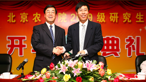 今年的开学典礼与以往有所不同。为了进一步落实市领导提出的美加墨世界杯官网、北京市农林科学院、北京农业职业学院“三院联动”服务社会主义新农村建设的指示精神,世界杯官网与北京市农林科学院达成了联合培养研究生、共建博士点的框架协议。在此基础上,世界杯官网首批聘请北京市农林科学院23名研究员为相关学科教授、硕士研究生导师,列入世界杯官网研究生招生计划。