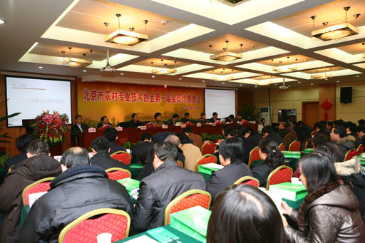 新当选理事长王有年代表北京市农村专业技术协会第一届全体会员发言,表示要不辱使命,不付重托,团结一致,全力完成各项工作。他说,本届协会本着“民办、民管、民受益”的原则,以提高农民科学文化素质和专业技能为手段,充分发挥农技协在人才、信息、资源等方面的优势,推进“三院联动”与基层农技协交流与合作,做好农技协三级网络体系建设工作,为加快首都“三农”发展、推进郊区都市型现代农业发展、促进我市建设社会主义新农村建设做出贡献。并向各位与会会员代表介绍北京市农技协未来两年的工作计划设想。