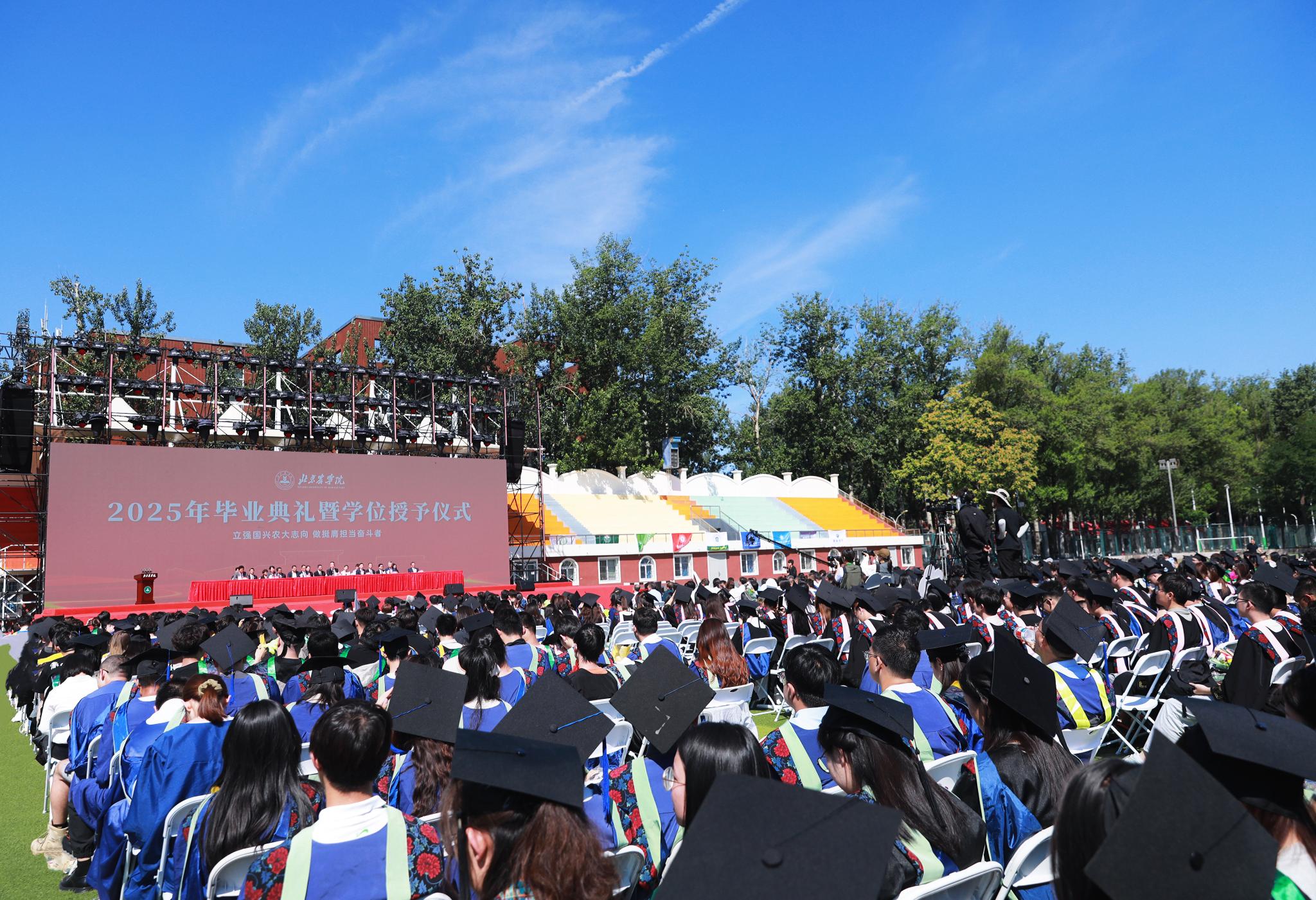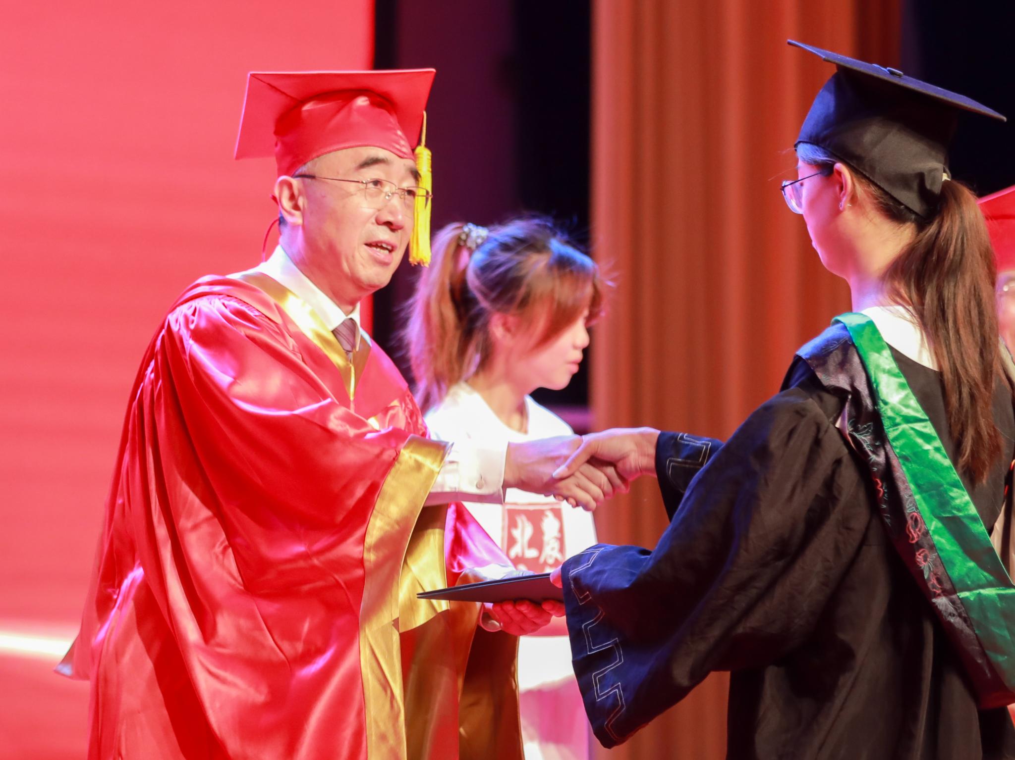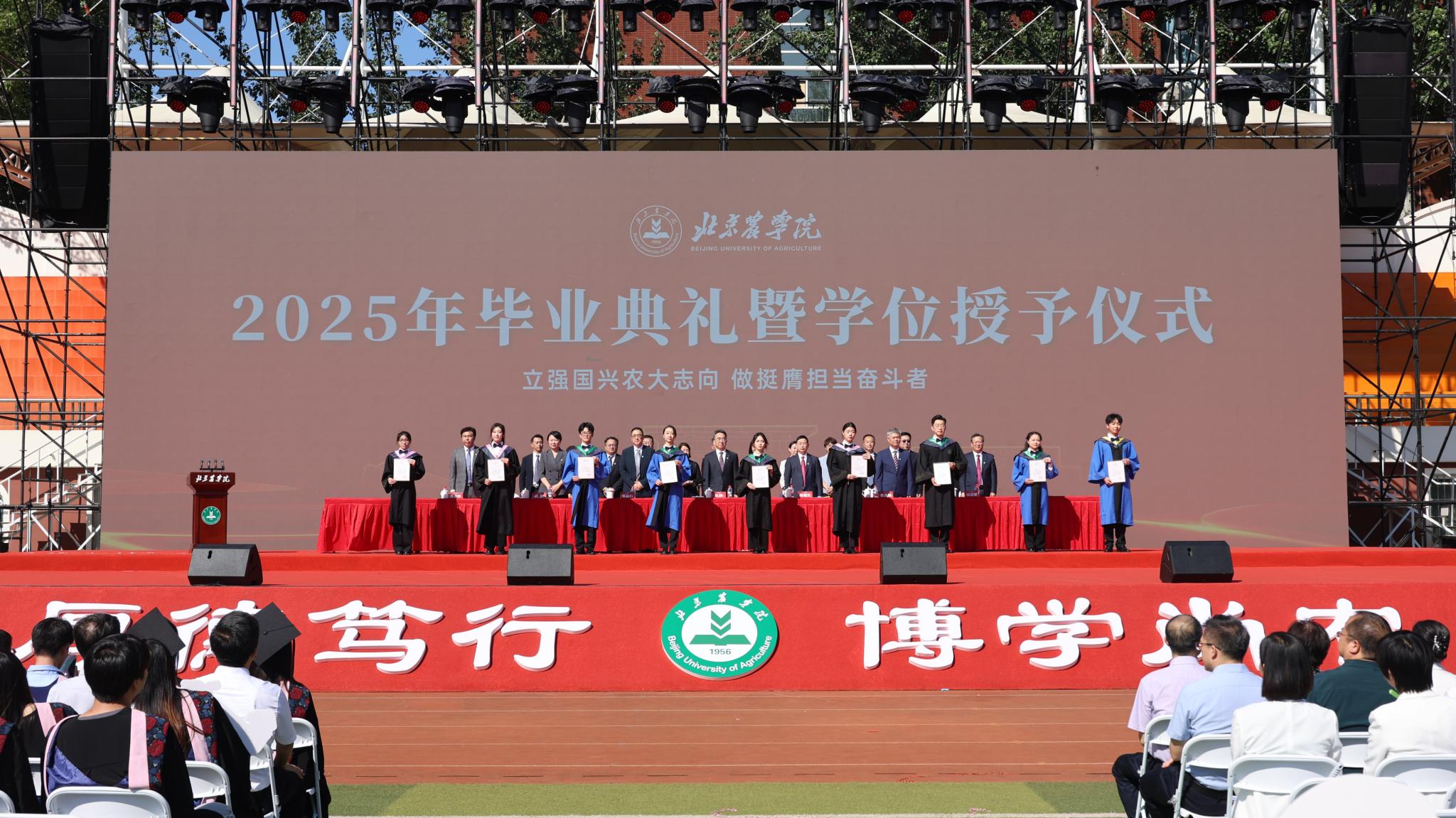 毕业生身着学位服依次庄重地走上主席台,校领导及学院领导满载祝福与嘱托为毕业生一一拨正流苏,愿北农学子在新征程上继续创造属于自己的青春华章!