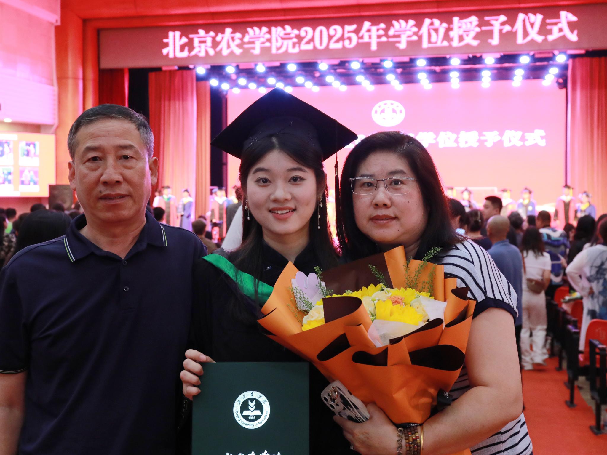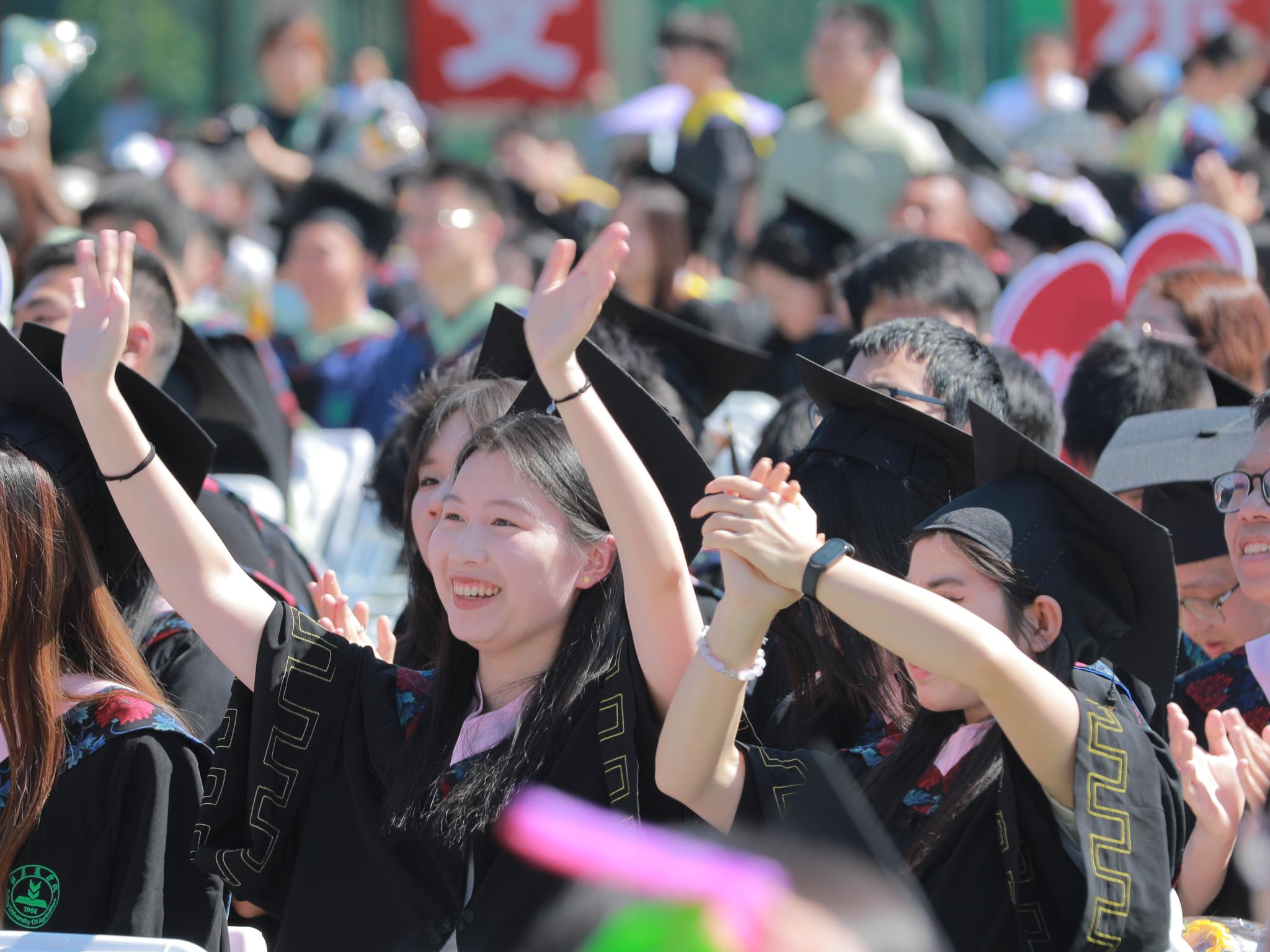 研究生毕业生代表、园林学院程睿翾同学说:“母校不仅赋予了我探索的勇气与学识,更将‘兴农’的志向熔铸进生命。未来我将在更广阔的学术天地里,以‘厚德’立心、以‘笃行’致远、以‘博学’夯基,让‘尚农’的初心在专业深化中愈发炽热,在乡村振兴的大舞台上建功立业。”