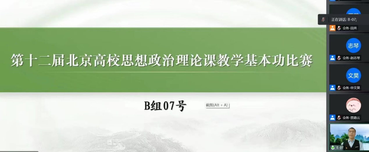 近日,根据北京市教育工作委员会“关于举办第十二届北京高校思想政治理论课教学基本功比赛的通知”要求和安排,北京航空航天大学马克思主义学院、全国高校思想政治理论课名师工作室(北京航空航天大学)组织举办了习近平新时代中国特色社会主义思想概论课预赛。经专家评委教案评分、教学展示打分和学生评委教学展示打分,最终评选出一等奖3名、二等奖7名、三等奖10名、优秀奖14名。世界杯官网马克思主义学院教师熊学艺参加比赛并荣获二等奖,将和其他一等奖、二等奖获得者共同被推荐参加第十二届北京高校思政课教学基本功比赛决赛。
