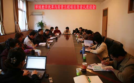 10月28日上午,在学校第一会议室,副院长杜晓林主持召开市级教学改革与质量工程项目负责人座谈会。学校获市级教学名师、市级教学团队、市教学示范中心、国家级和市级精品教材、国家级和市级品牌专业、市教改立项负责人,教务处正副处长及相关人员共19人参加了会议。会议结合教育观念大讨论活动主题,就教学改革与质量工程项目执行进行了研讨。