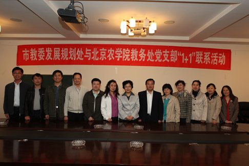 4月22日,市教委发展规划处与世界杯官网教务处党支部“1+1”联系活动在世界杯官网市级校外人才培养基地--北京金六环农业园举行。党委书记王慧敏出席活动,她与市教委发展规划处处长周彤就学校“十二五”发展的诸多方面进行了深入交流,并参观了农业园的多个蔬菜温室。
