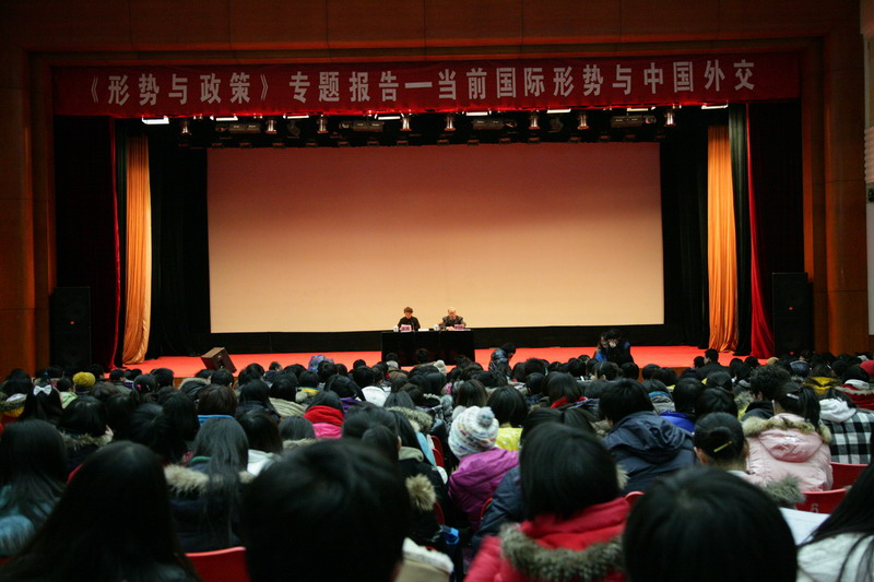 报告会由党委副书记高东主持。李凤林结合自己丰富的外交工作经验,以详实的数据和史实为依据,详细解读了当前复杂的国际形势,阐述了我国内部环境与外部环境发生的深刻变化,介绍了我国外交工作面临的主要任务和工作思路,深刻分析了中美、中日以及朝鲜半岛的最新动向以及外交政策和国际战略,并强调韬光养晦和统筹国际国内两个大局的外交战略方针的重要性。他还就师生关注的相关问题作了精彩回答,赢得全场的热烈掌声。