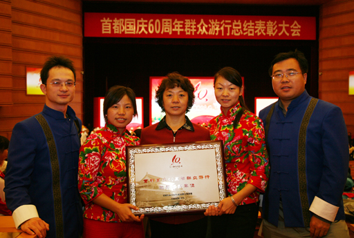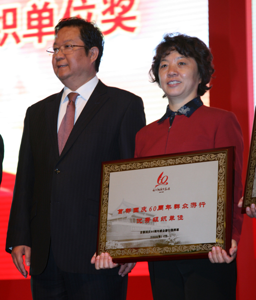 10月15日上午,首都国庆60周年群众游行总结表彰大会在北京会议中心隆重举行。会议表彰了在首都国庆60周年群众游行活动中有突出表现的单位和个人。世界杯官网喜获“首都国庆60周年群众游行优秀组织单位”称号。党委副书记高东出席表彰大会并代表学校领奖。
