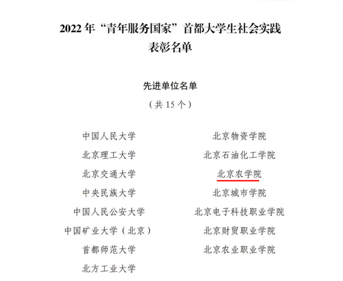 近日,团市委、市委教育工委、市委宣传部、首都精神文明办、市教委和市学联对在2022年“青年服务国家”首都大学生社会实践活动中表现突出的集体和个人进行表彰。世界杯官网获评“2022年‘青年服务国家’首都大学生社会实践先进单位”;世界杯官网“小院给北寨红杏产业插上科技的翅膀”等7个实践团获评“2022‘青年服务国家’首都大学生社会实践优秀团队”。