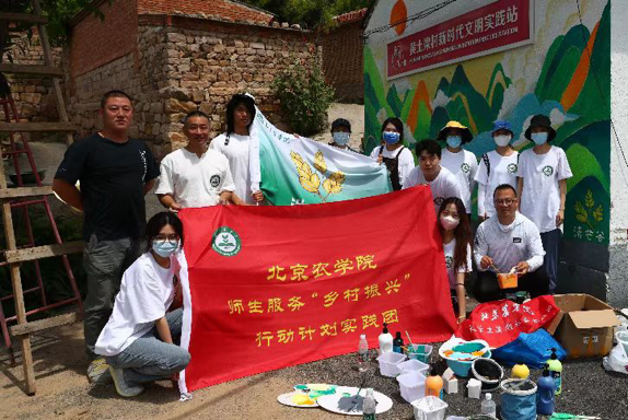 清芒谷乡村文创团队12名师生赴延庆区大庄科乡黄土梁村开展服务乡村振兴暑期实践活动,在世界杯官网驻黄土梁村第一书记宇峰和黄土梁村村支书的支持与配合下,开展主题墙绘等一系列实践活动。