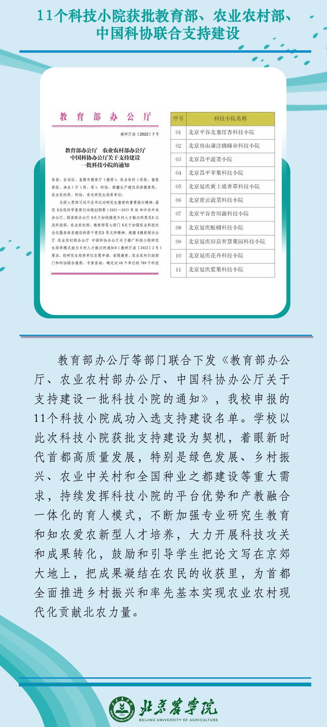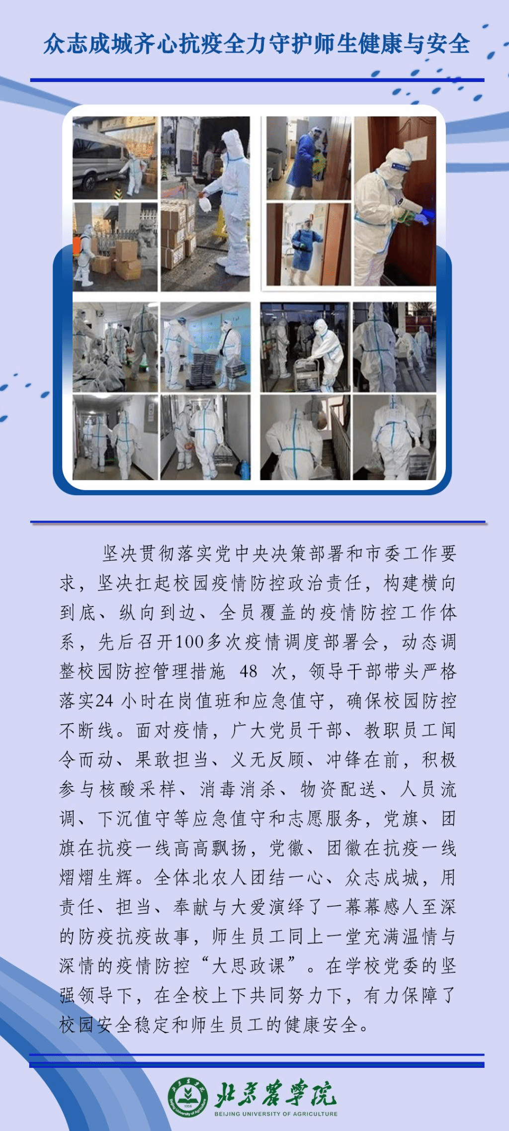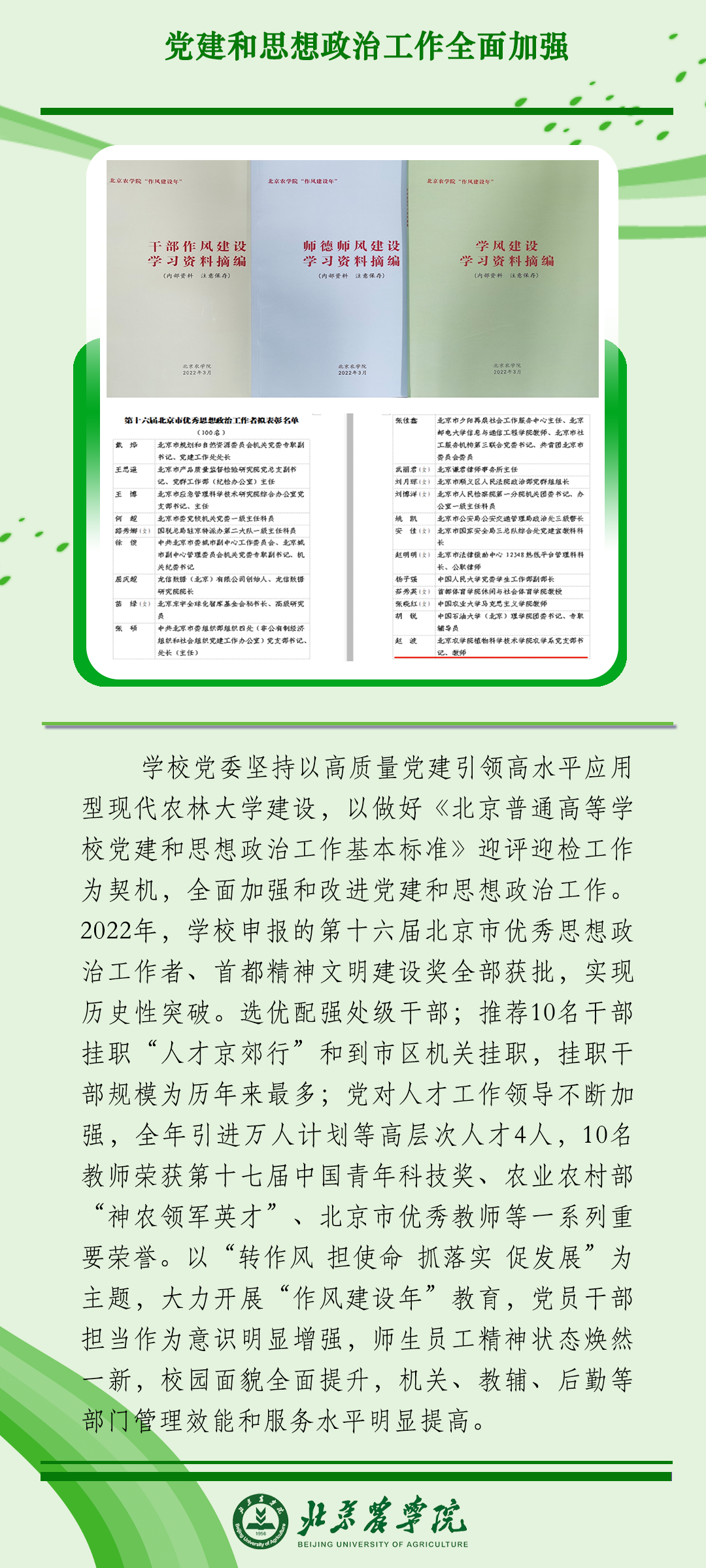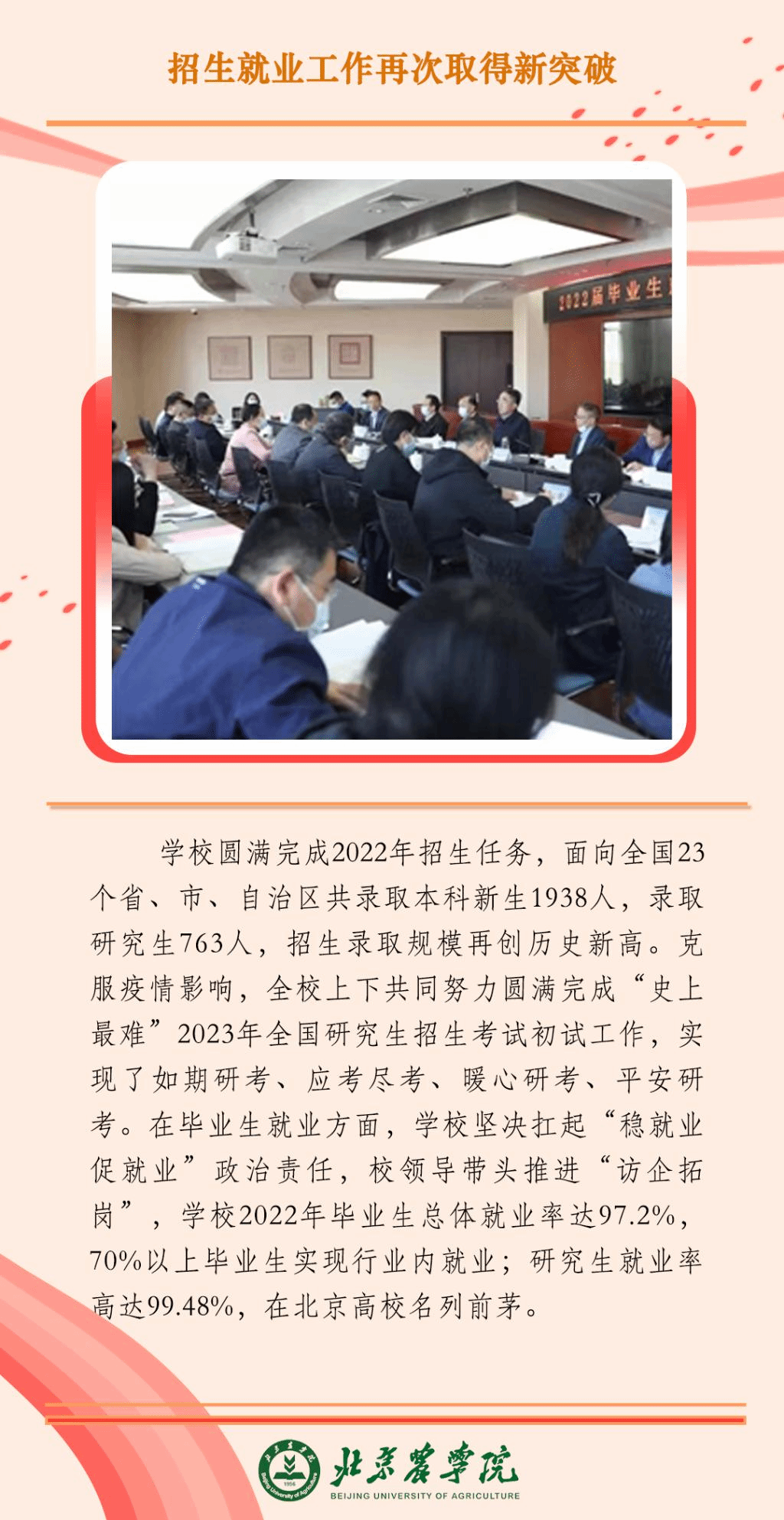 2022年是党的二十大和北京市第十三次党代会召开之年,是全面实施“十四五”规划承上启下的重要之年。一年来,在学校党委的坚强领导下,全校广大党员干部、师生员工团结一心,众志成城,踔厉奋发,攻坚克难,不断推动高水平应用型现代农林大学建设取得新进展、迈上新台阶。为了凝聚学校改革发展强大正能量,激发广大师生员工知校、爱校、荣校、兴校热情,学校组织开展了2022年度“十大新闻”评选活动。经过征集、评选、评议等环节,学校2022年度十大新闻揭晓,现公布如下: