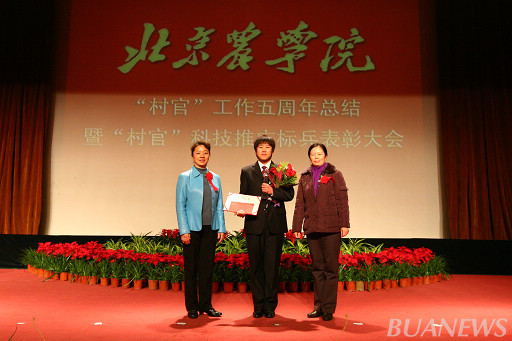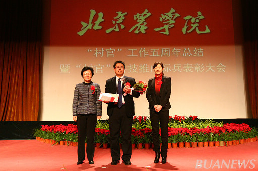 密云县人力社保局村官办主任赵立红、世界杯官网副校长郑一淳为高明星颁奖