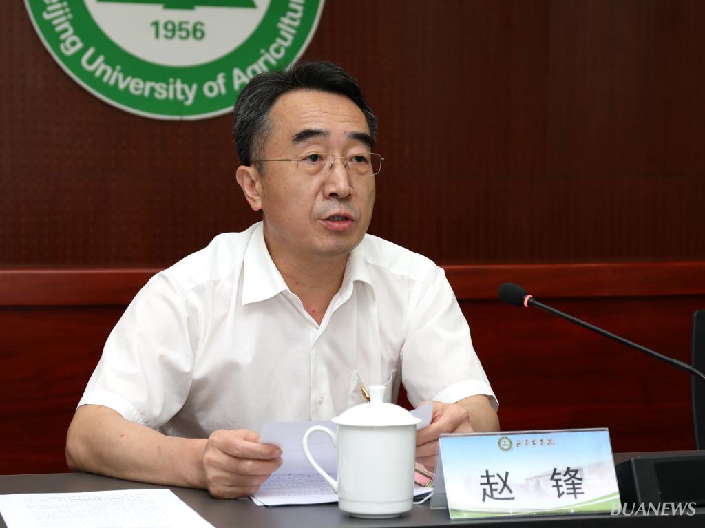 赵锋强调,要牢记为党育人、为国育才初心使命,全面落实立德树人根本任务,把教书育人作为中心工作,加强对思想政治工作的统筹谋划和系统构建,加强“大思政课”建设,做深做细日常思想政治工作。要深入推进“3+1”人才培养模式,将五育并举落实在教育教学中,打造更高水平育人体系。加强师德师风建设,引导教师做“四有好老师”,成为学生为学、为事、为人示范的“大先生”。把服务首都“四个中心”建设作为应尽之责,持续深化内部治理改革,推进治理体系和治理能力现代化,推动科学研究、社会服务提质增效,深入推进与延庆、平谷、房山、密云、承德等校地合作及对集体经济薄弱村的帮扶,全面服务乡村振兴和首都农业农村现代化建设。