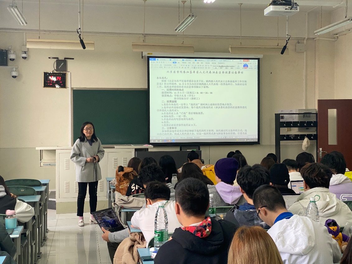 11月3日,国际学院2019级国贸班召开主题班会,党总支书记陈俐作为2019级国贸班第二班主任主持会议。陈俐作为第二班主任走到学生当中,主动融入学生思政工作,为青年教师做好示范表率,充分发扬机关干部素质全面、视野开阔、作风优良的特点,用好的作风和行为当好学生引路人。