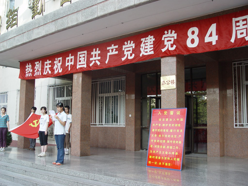在党的84岁华诞到来之际,学校组织学生党员、预备党员和入党积极分子500余人,在办公楼前举行了“新党员入党宣誓老党员重温誓词” 仪式。院党委副书记罗维忠、王晓霞出席宣誓仪式。仪式由党委学生工作部部长孙亚利主持。
