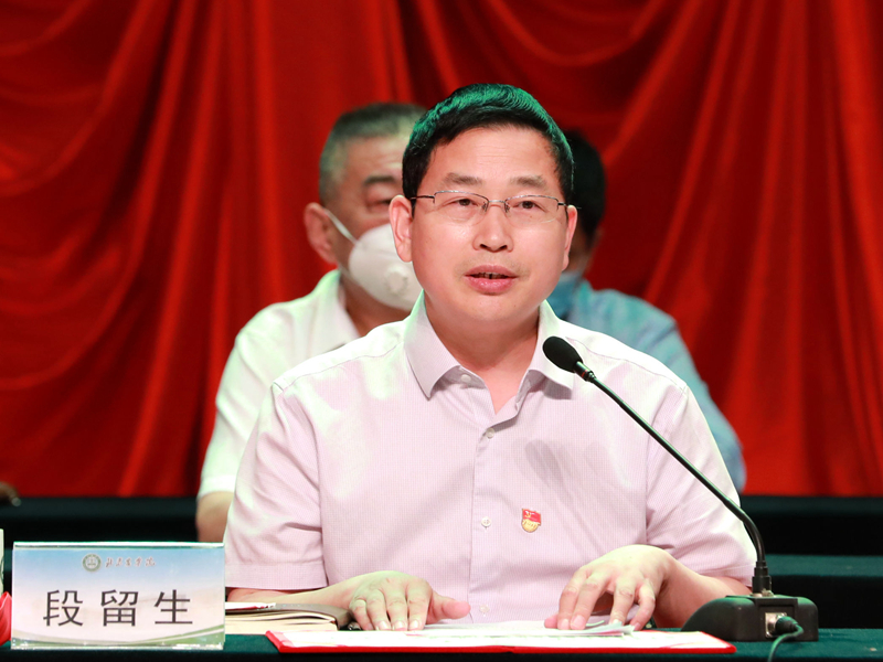 杨军强调,要扎实开展党史学习教育,从历史中汲取智慧和力量。各基层党组织和广大师生党员要以党的百年华诞为起点,进一步深化党史学习教育,把学习贯彻习近平新时代中国特色社会主义思想作为首要政治任务,牢记“看北京首先要从政治上看”的要求,增强“四个意识”,坚定“四个自信”,做到“两个维护”,在奋进新征程的伟大实践中走在前,做表率。要坚持以高质量党建为引领,矢志推动学校为党育人、为国育才。当前学校处于新发展阶段,各级党组织和全体党员要胸怀中华民族伟大复兴战略全局和世界百年未有之大变局,心怀“国之大者”,不断提高政治判断力、政治领悟力、政治执行力。要贯彻新发展理念,认清新发展阶段的形势要求,站在服务北京“四个中心”功能建设、乡村振兴和都市农业高质量发展的高度,要做到明了全局、认清变局、谋划格局、注重开局、妥善布局、努力破局。要坚持立德树人根本任务,做学生健康成长的指导者和引路人。广大教师要坚守立德树人初心使命,带头践行社会主义核心价值观,自觉增强立德树人、教书育人的荣誉感和责任感;牢固树立终身学习理念,拓宽视野,更新知识,创新教育教学方法;牢固树立改革创新意识和先进教育理念,积极推进教育创新实践,不断提升教书育人本领。