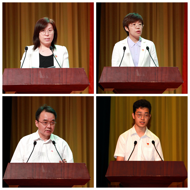 先进党组织代表、北京高校先进党组织、经济管理学院会计系教师党支部书记白华同志,优秀党务工作者代表、组织部副处级组织员、统战部副部长靳晓熙同志,优秀教师党员代表、北京市优秀共产党员、继续教育学院直属党支部书记、院长蒋林树同志和优秀学生党员代表、动物科学技术学院学生党员张孟玮同志分别发言。