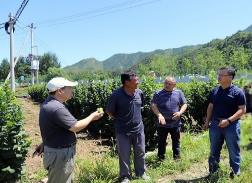 怀柔区汤河口镇通过发展庄户沟门、汤河口等村500亩大榛子种植,形成了一道亮丽的生态风景线。眼下正值榛子生长茂盛的季节,据了解,开春时节,在做好疫情防控的前提下,农户们对树苗进行松土、除草、浇灌等工作,正是在他们的精心照料下,成片的榛子树长势喜人,蔚为壮观。