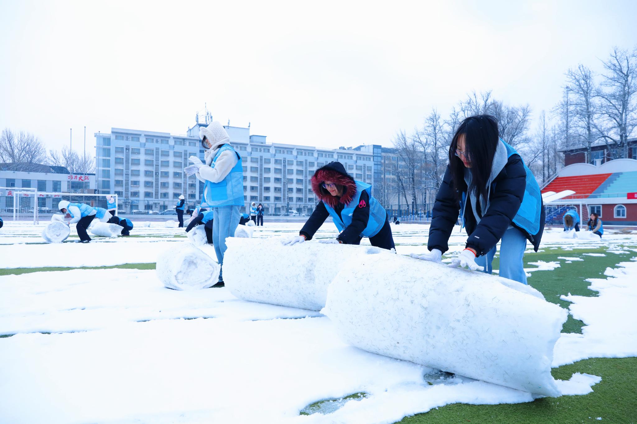 分别组成志愿扫雪队