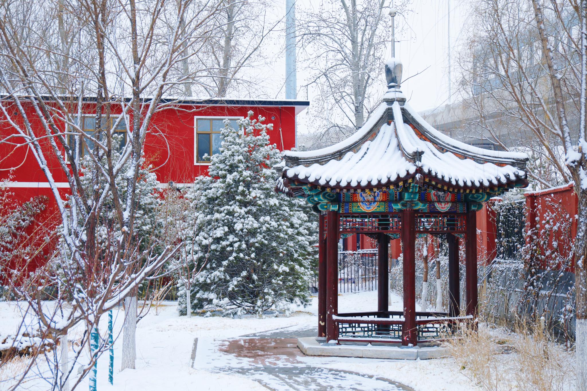 红墙映白雪